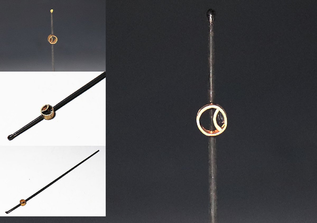 - 【桃】アンティーク髪飾り:金工鉄地鍍金蹴鞠簪