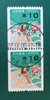 - 誤発売 10円コイル 縦ペア KANDA 500 22.IX.00 12-18 JAPAN 初期使用 使用済 美品 A-98-4s