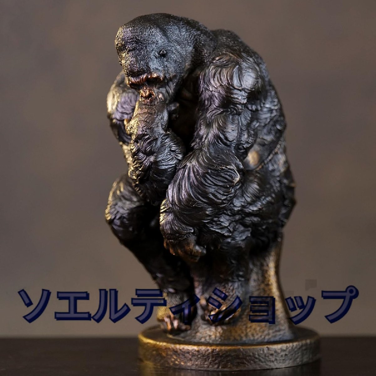 - ワイルドライフ ゴリラ【考える人 ブロンズ像】人形 フィギュア 置き物 玄関に飾り (高さ17cm×巾11cm)