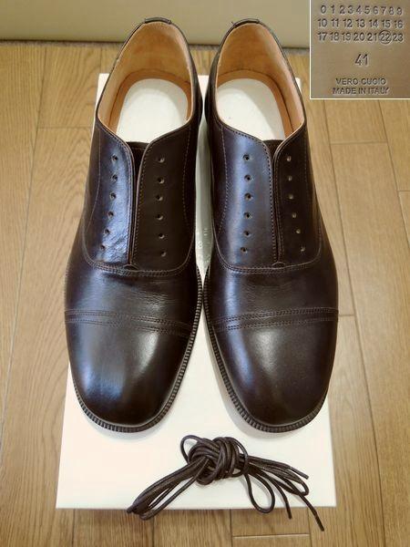 > マルタンマルジェラ22 紐なし イタリア製 レザーシューズ 焦げ茶サイズ41 キャップトゥオックスフォード 新品保管品