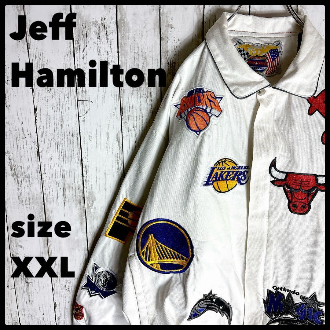 > Jeff Hamilton ジェフハミルトン レーシングジャケット NBAチームロゴ 刺繍 XXL 古着