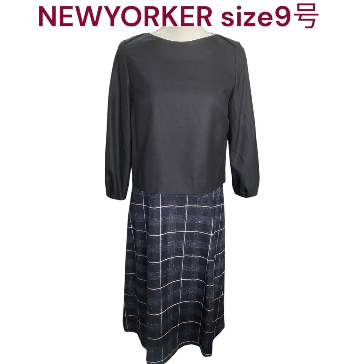 - 美品 ニューヨーカー チェック柄 ドッキング ワンピース 9号、M NEWYORKER