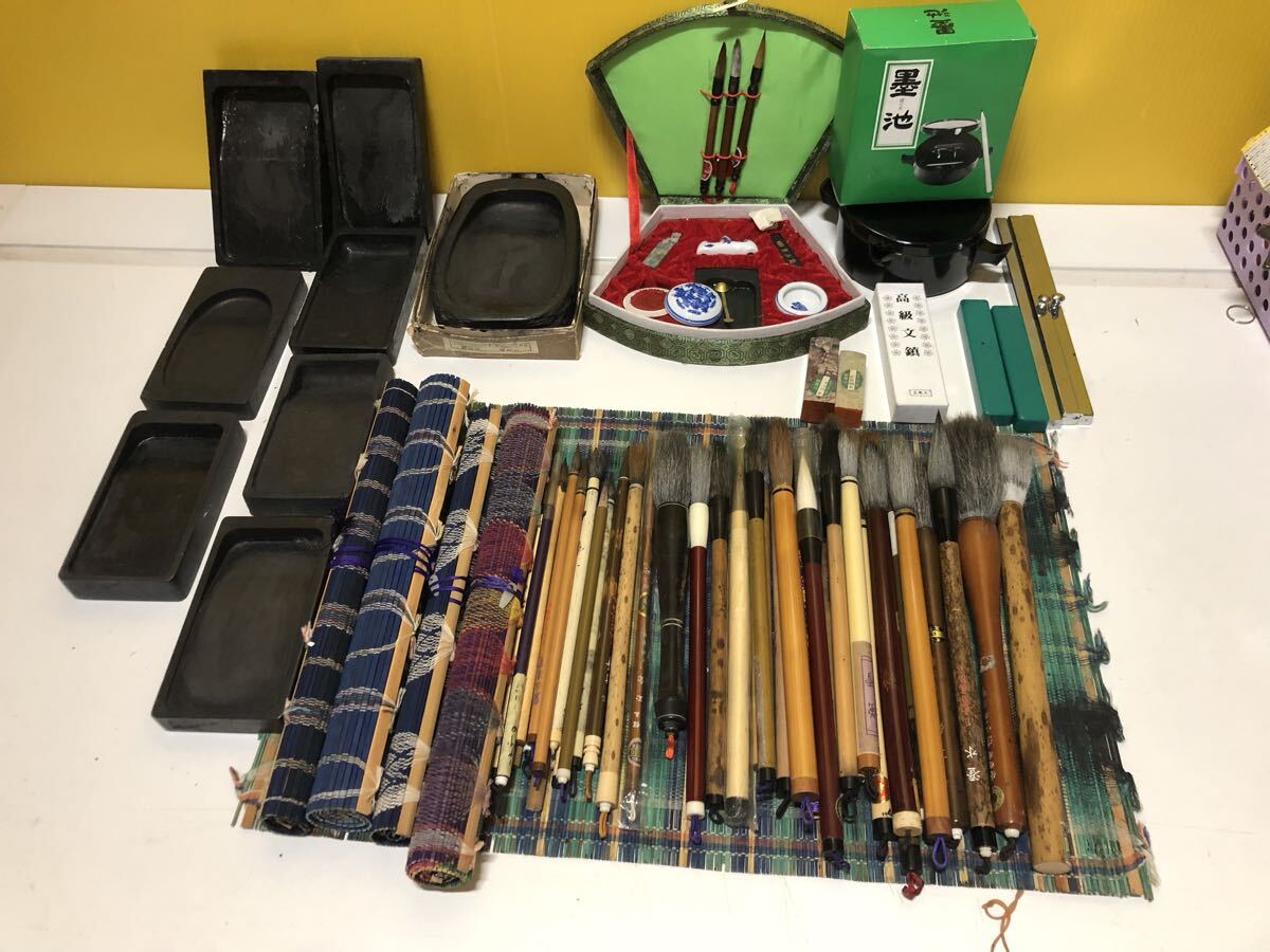 - 【現状品】中古品 習字 筆 文鎮 硯 書道 書道具 まとめ セット