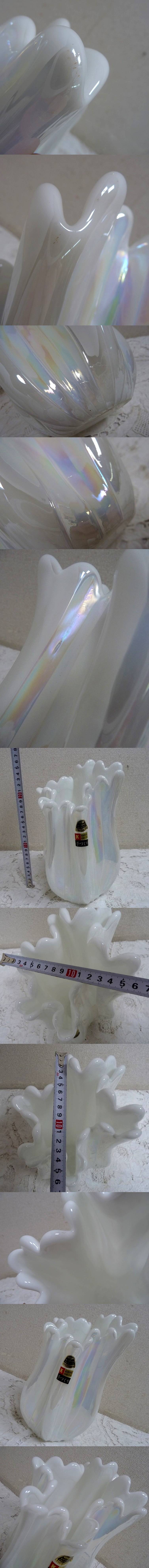 - (☆BM)昭和レトロ クラタクラフト EXTEND PROCESS PATENT KURATA CRAFT ガラス製 ラスター加工 虹色 花瓶 ホワイト 白 フラワーベース 花器