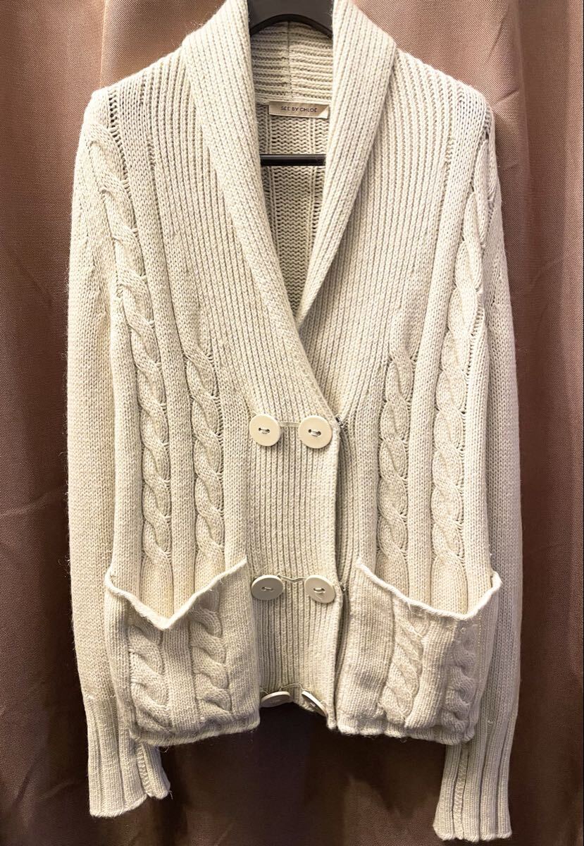 - MADE IN ITALY製 SEE BY CHLO ショールカラーケーブルニットカーディガン アイボリー 38サイズ シーバイクロエ CHLOE クロエ イタリア製