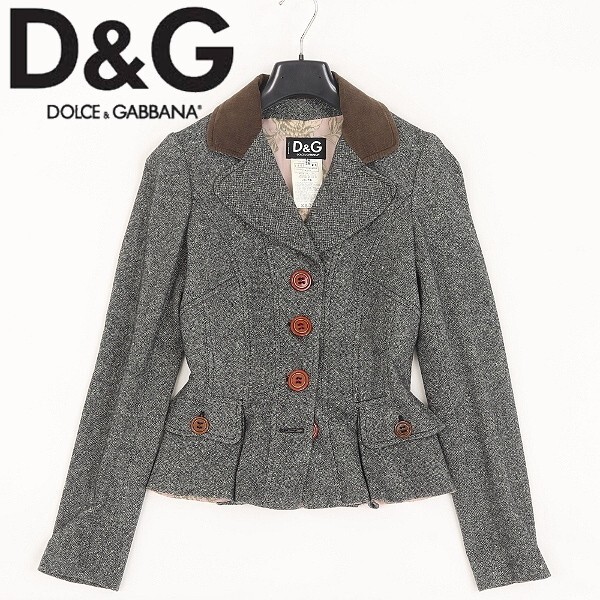 - 【HA655】◆D&G ドルチェ&ガッバーナ 裏地花柄 衿切替 ネップ ツイード ジャケット 24/38