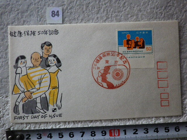 - FDC 健康保険50年 1976年 1貼1消 銘板付 説明書有 わたなべ版●84●同梱大歓迎