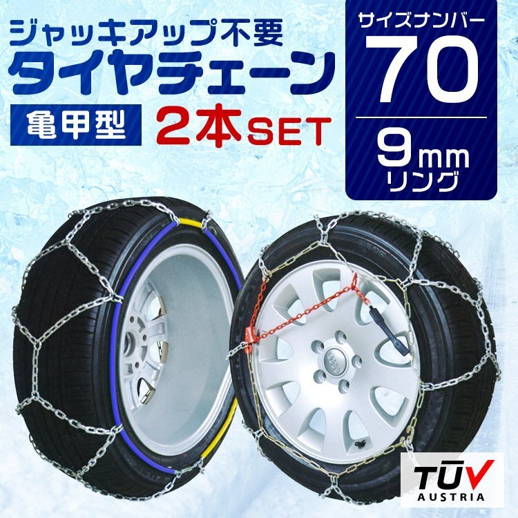 > 【70サイズ】タイヤチェーン 9mm 簡単取付 金属 スノーチェーン 亀甲型 215/60R13 205/65R13 195/75R13 等 1セット(タイヤ2本分)