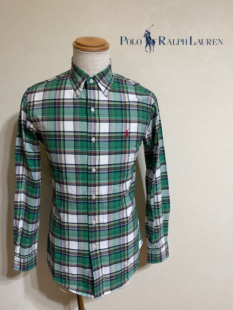 - 【美品】 Polo Ralph Lauren ポロ ラルフローレン タータンチェック ボタンダウンシャツ トップス サイズXS 165/88A 長袖 グリーン系