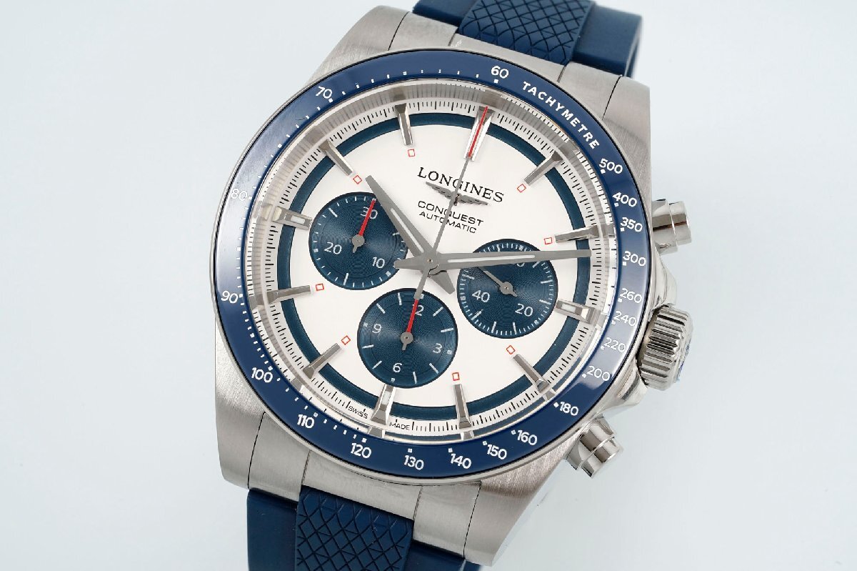 > LONGINES ロンジン Conquest Chronograph 腕時計 ウォッチ メンズ 自動巻き ラバーベルト ブルー文字盤 42mm L3.835.4.98.9