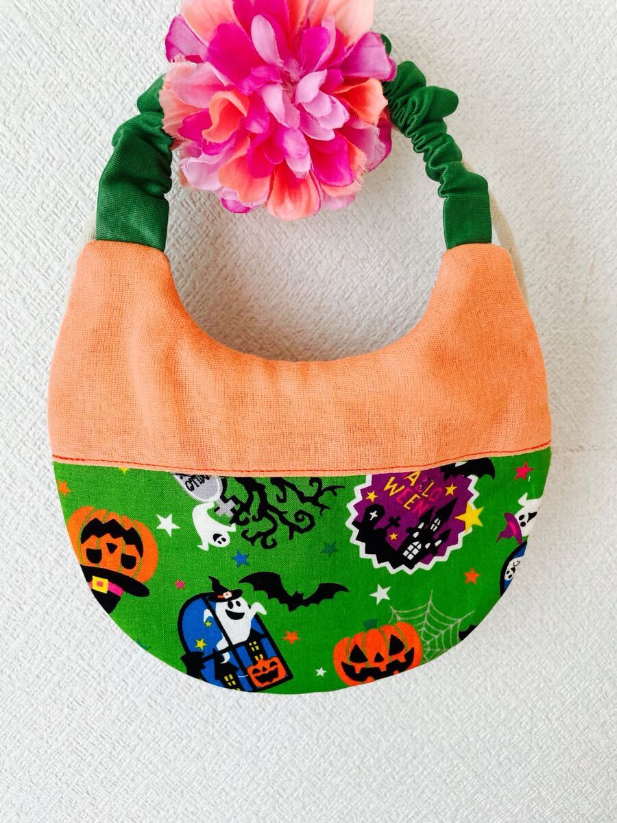 - ハンドメイド★ハロウィン みどり★よだれかけ 6重ガーゼ+ニットゴムスタイ★