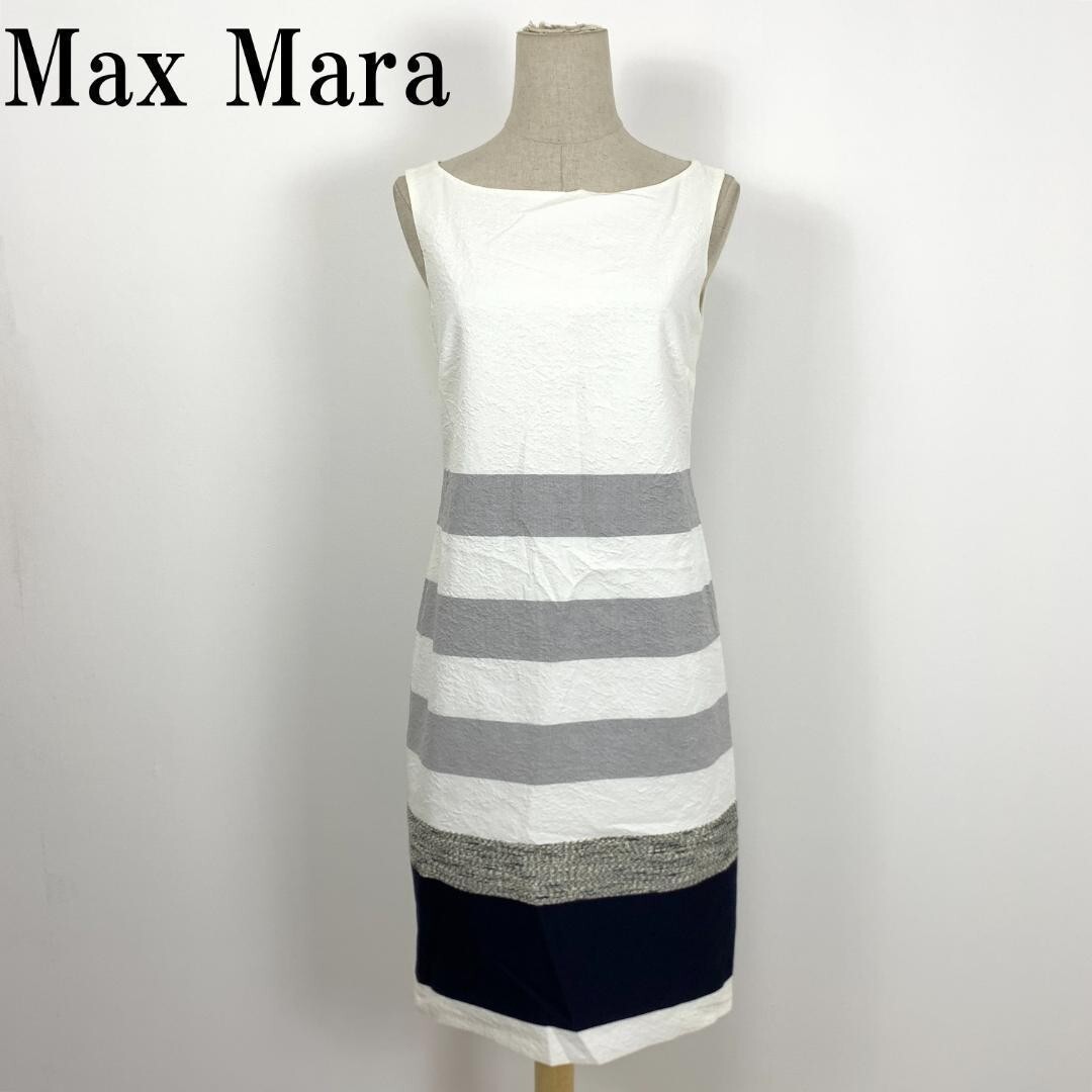 - LA7630 マックスマーラ Max Mara ボーダー フォーマルワンピース コットン ノースリーブワンピース オフホワイト L