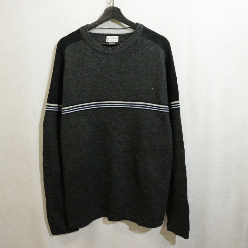 - P241 2000年代製 ARIZONA アクリルニットセーター■00s 表記Lサイズ グレー ボーダー マルチカラー アメカジ ストリート 古着 古着卸 90s