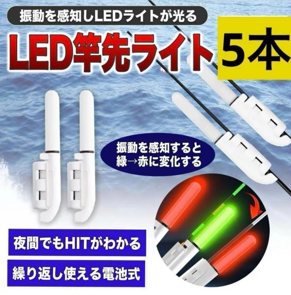 - 【新品】ヒットセンサー 5個 竿先ライト あたり点滅 デンケミ 穂先ライト 集魚灯 LED 夜釣り ヒットセンサー 投げ釣り 電池別売り