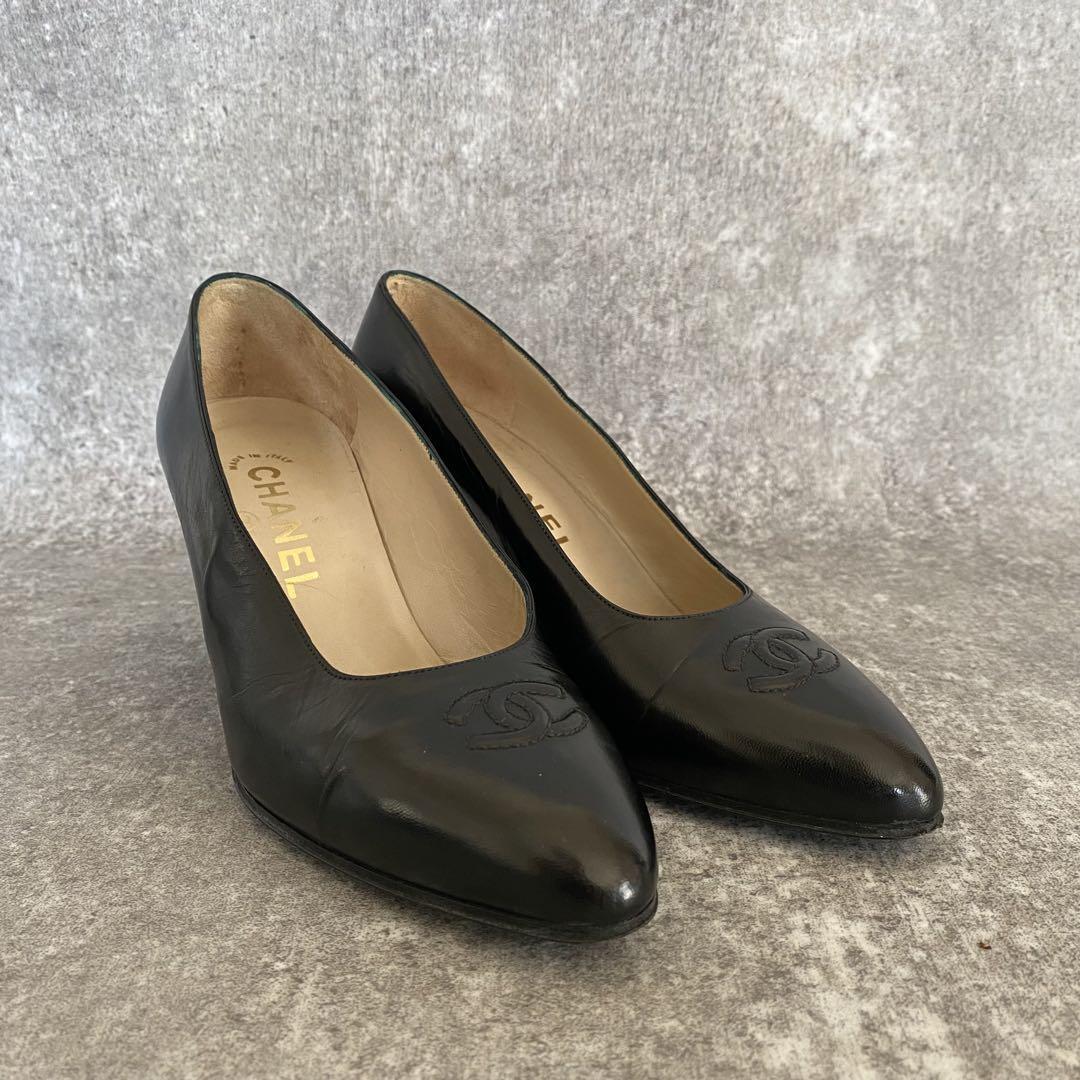 - CHANEL シャネル ココマーク パンプス レザー ヒール ブラック 22.5cm