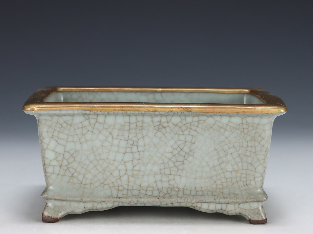 - ▽鴻▽宋朝時代 陶磁器 官窯灰青釉包金口四方洗 箱付き 染付 時代物 中国古美術 骨董品