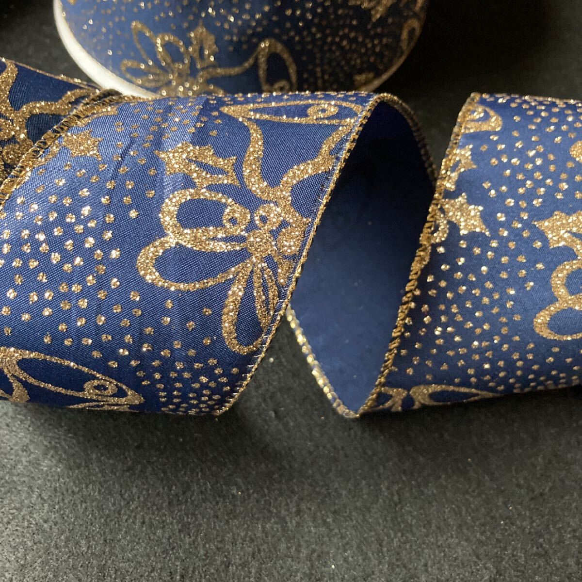 - リボン切り売り 1.5m 約6.3cm幅 クリスマスリボン ネイビーベルラメ
