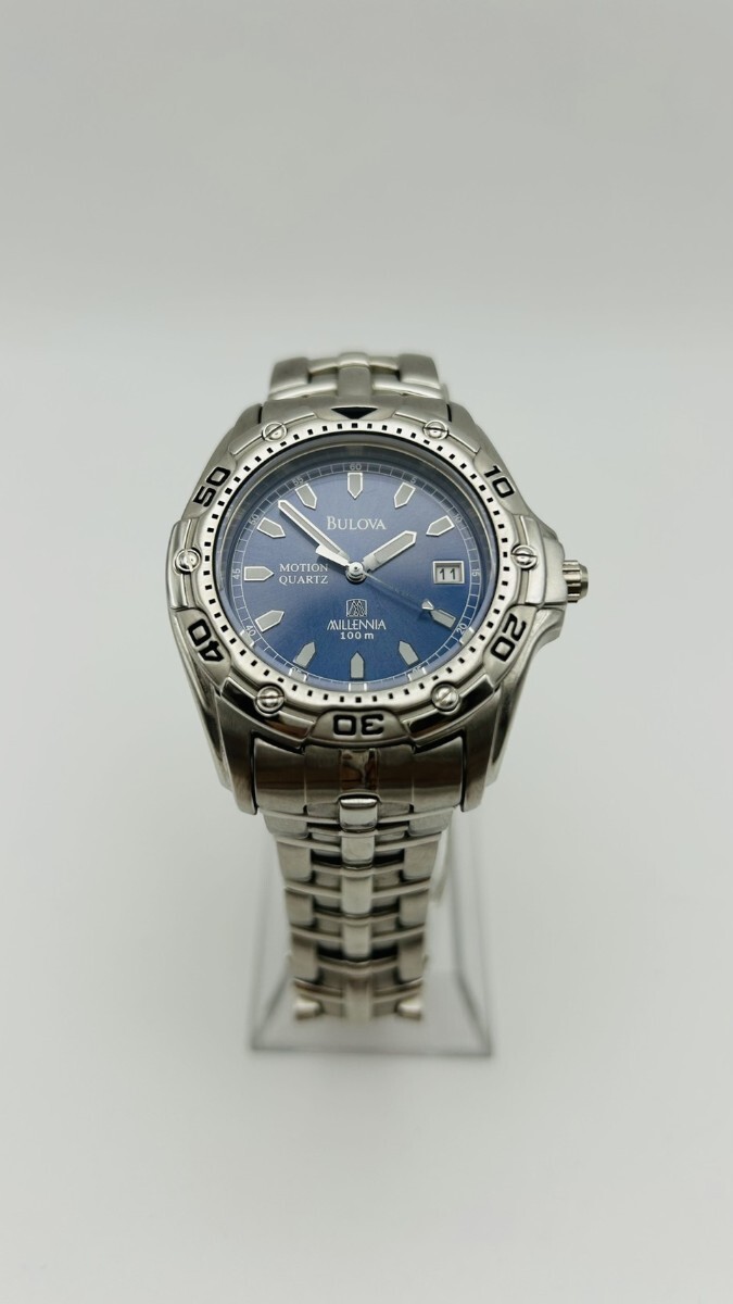 - #20352 稼働品 BULOVA ブローバ MILLENNIA 96B17 MOTION QUARTZ 腕時計 メンズ 文字盤ブルー