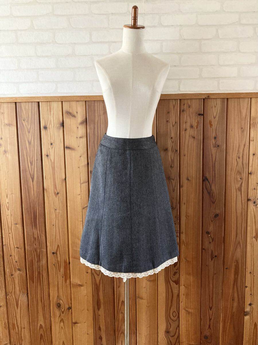 > Te chichi テチチ レディース ウール混 スカート Mサイズ 黒系 グレー系 膝丈 膝下 フレアー 上品 レース 秋冬物 wool mix skirt ⑫7