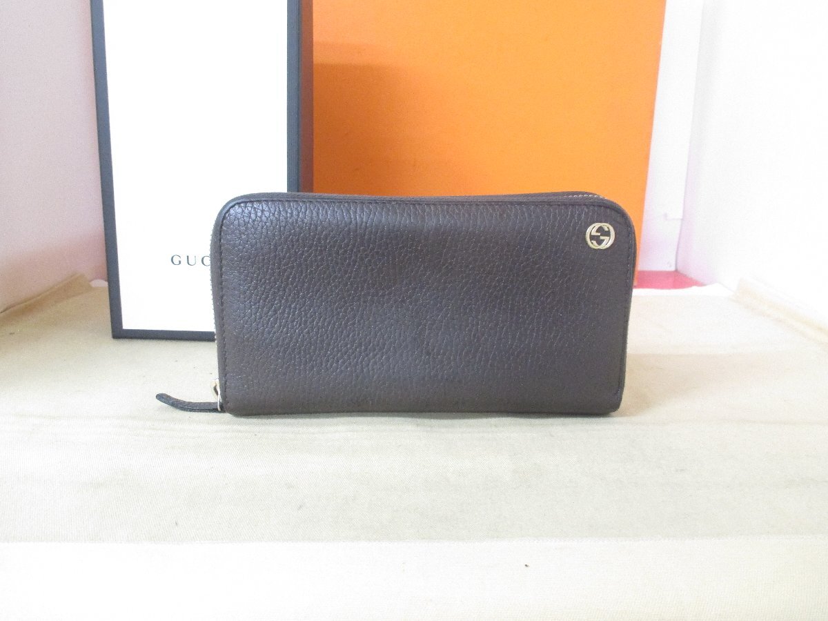 > 本物保証【即決で送料無料】濃茶/グッチ/インターロッキング/GG/ジップ/ファスナー/財布/449347/男女兼用/GUCCIの正規品