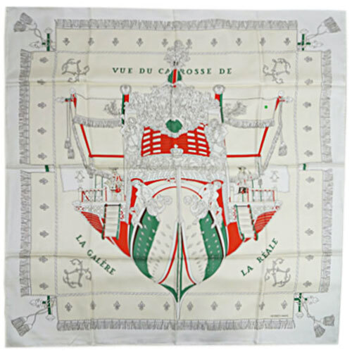- 未使用 エルメス スカーフ HERMES カレ90 シルク 90cm 90×90 大判 正方形 VUE DU CAROSSE DE LA GALERE LA REALE ホワイト 白 29146