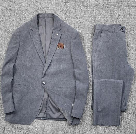 - 人気品M/灰色 ウールブレンドの上質感 新品 メンズ ウール混 シングルスーツ ウエスト伸縮有り 細身 春秋冬 ビジネス スーツセット