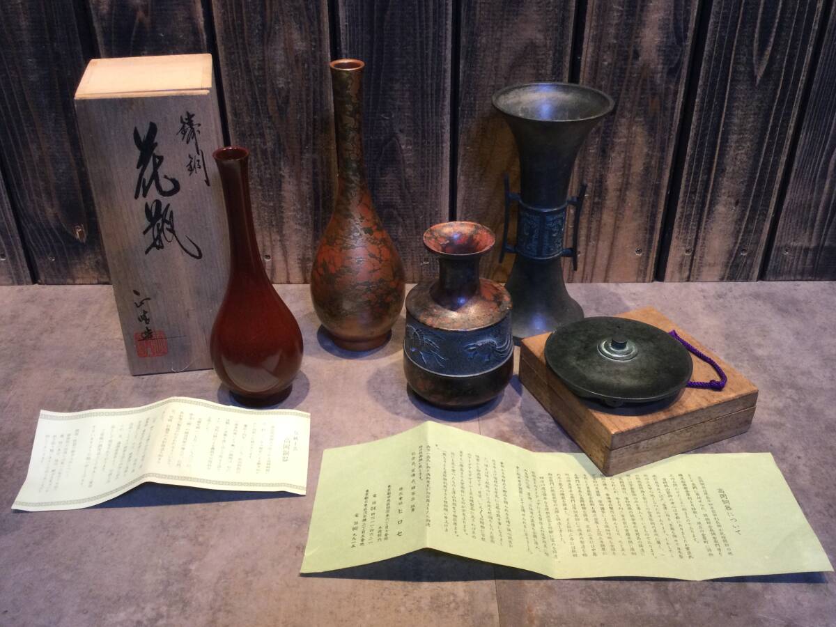 - 高岡銅器 花瓶 ペーパーウェイト 5点まとめて 花入 花器 金属工芸 鋳銅・青銅製 花瓶 花器 壺 壷 華道具 置物 美術工芸品