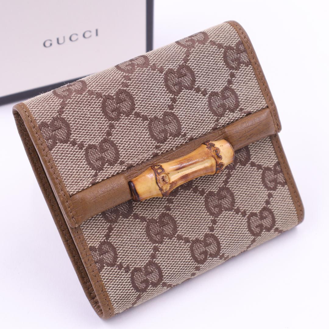 - GUCCI バンブー 三つ折り財布 ベージュ×ブラウン 2688 本体のみ 良