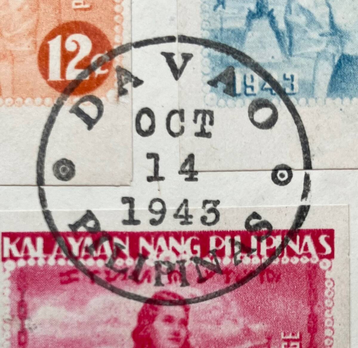 - 【南方占領地切手 フィリピン】地方(島)局 1943独立記念切手 FDC (加刷郵便封皮使用)ミンダナオ島ダバオ局日付印