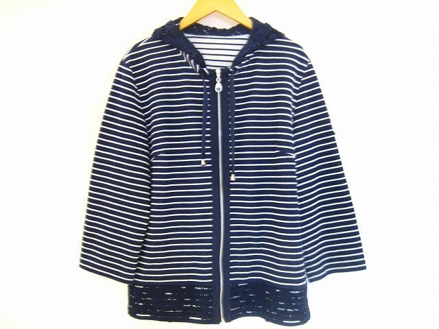 > Firosa/フィローサ ボーダー ジップアップ 七分袖 パーカー レースデザイン レディース サイズ : 11 ネイビー