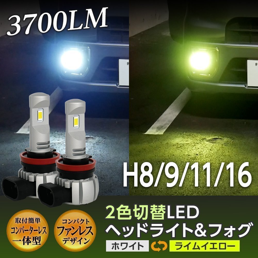 > ウェイク H16 フォグランプ ライムイエロー ホワイト 2色切替 カラーチェンジ LED 一体型 2灯合計3700LM