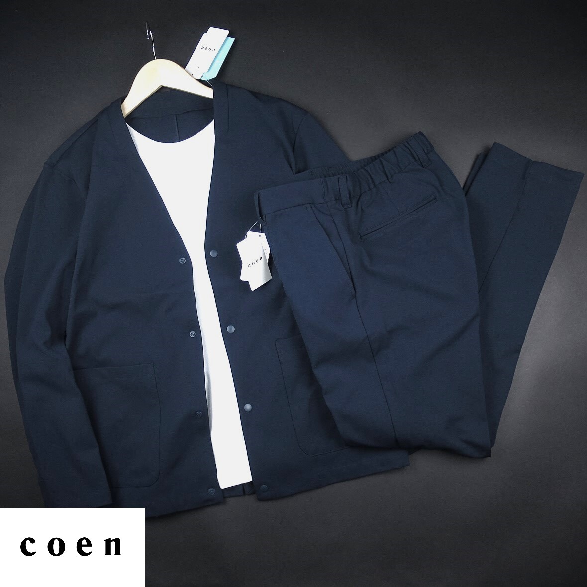 - 新品 ★ ユナイテッドアローズ コーエン coen ストレッチ ノーカラージャケット パンツ セットアップ 237・375/79紺/【L】