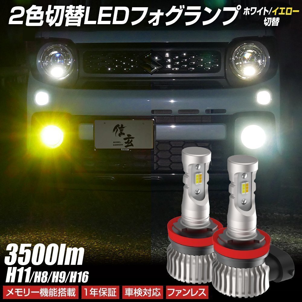 > LED フォグランプ H8 H9 H11 H16 イエロー ホワイト 2色切替 2灯合計3500LM メモリー機能 リセット機能あり ファンレス 車検対応 1年保証