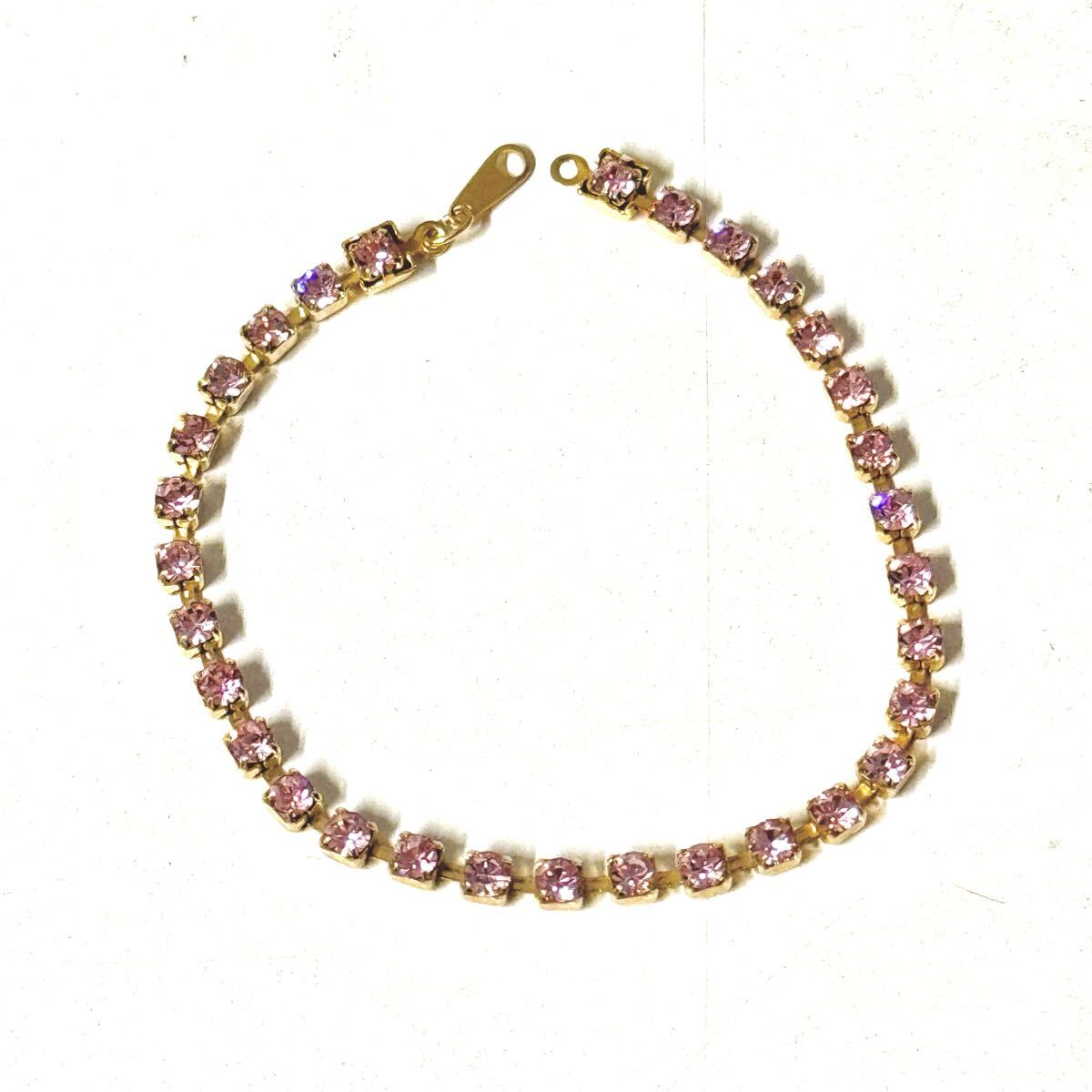 - 留め具なし ラインストーン ブレスレット アクセサリー ゴールドカラー ピンク