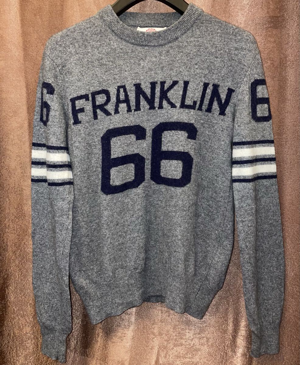 > MADE IN ITALY製 FRANKLIN MARSHALL VARSITY クルーネック ヴァージンウールセーター グレー XSサイズ フランクリンマーシャル イタリア製