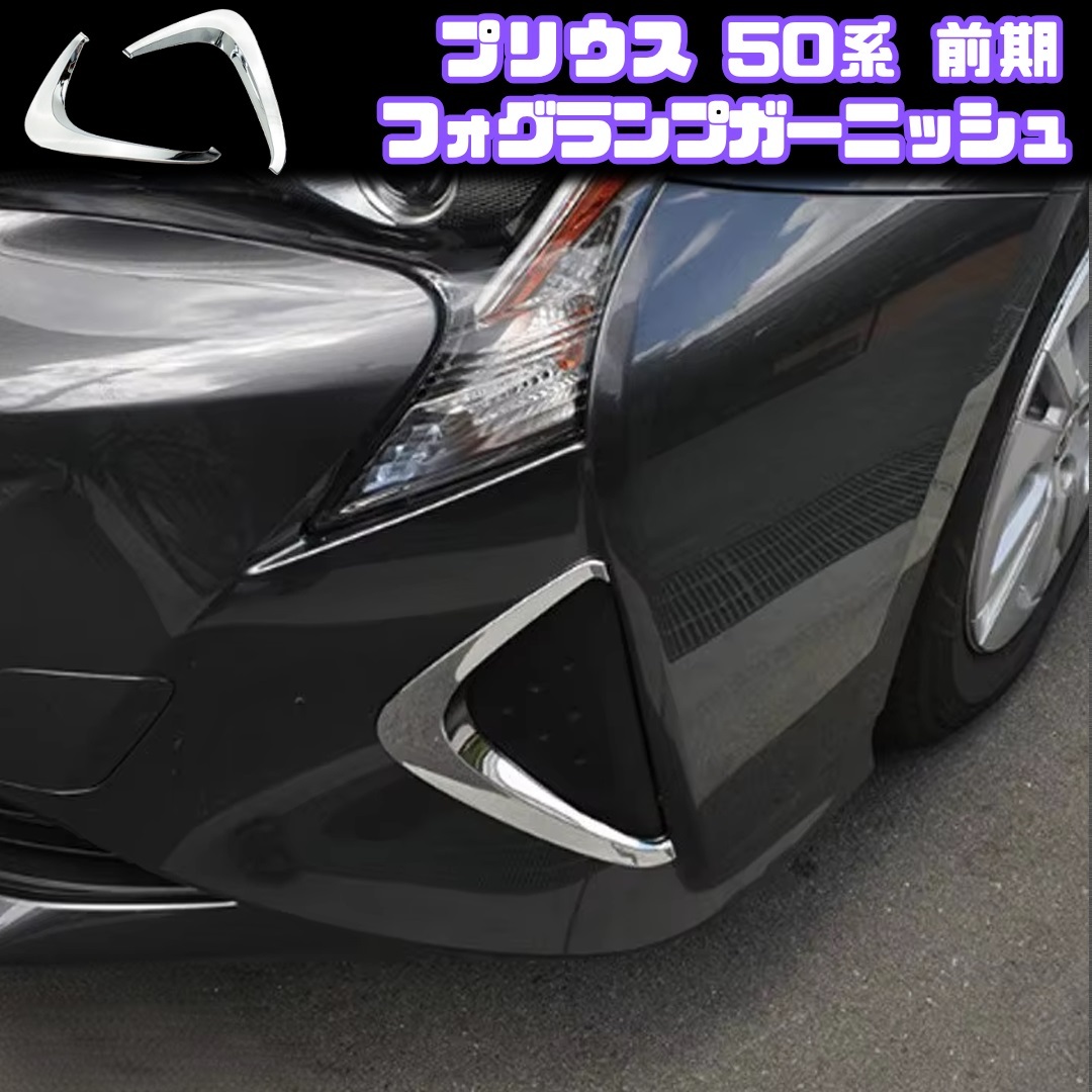 - 【プリウス 50系 前期】 フロント フォグランプ カバー / メッキ / トヨタ PRIUS ZVW50 ZVW51 ZVW55 対応 / リフレクターガーニッシュ