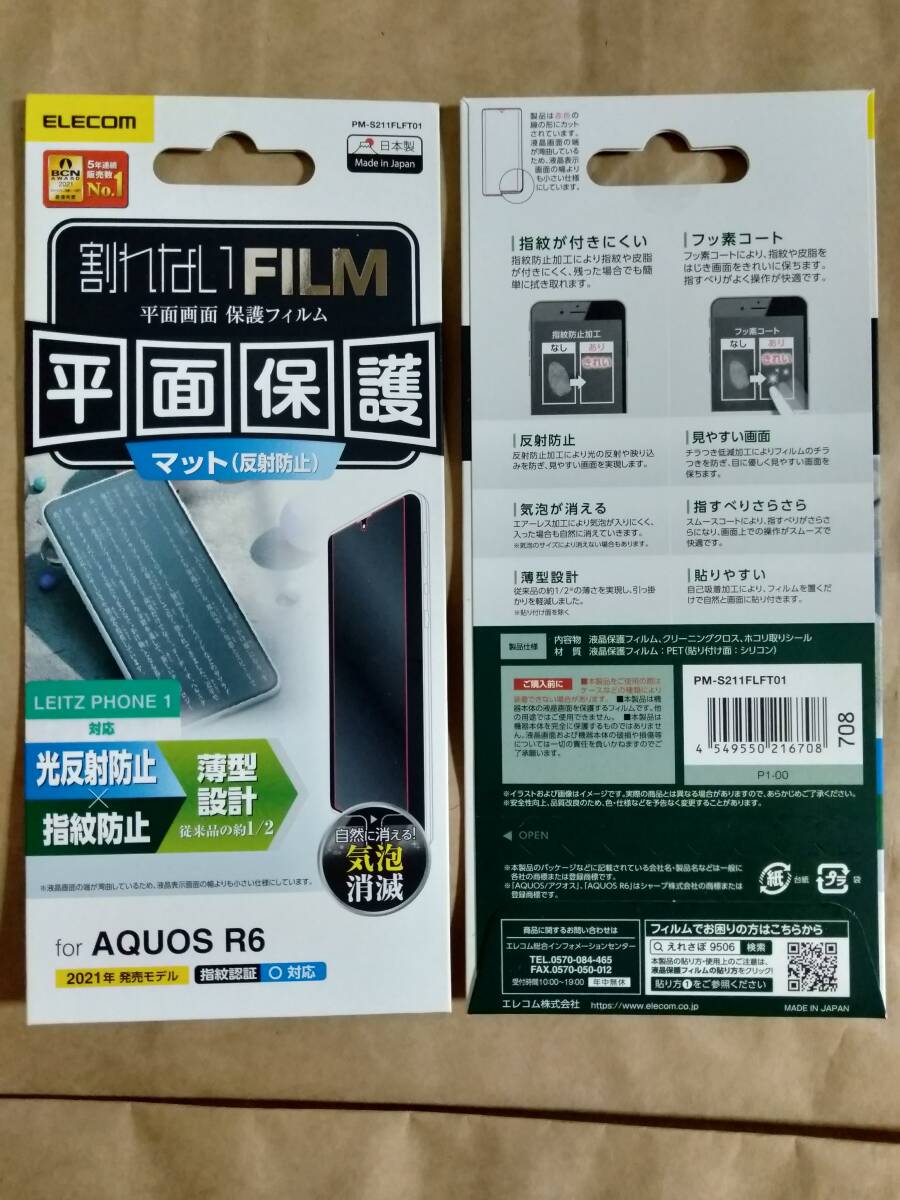 - 安心の日本製 ELECOM AQUOS R6 SH-51B 液晶画面をキズや汚れから守る、指紋防止タイプの反射防止フィルムです。