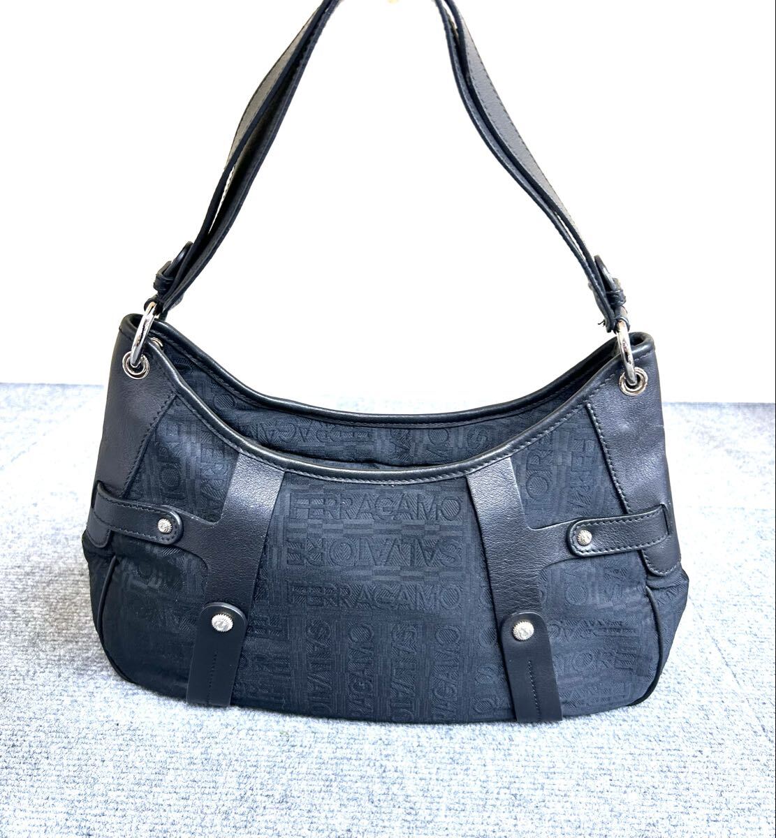 > Salvatore Ferragamo フェラガモ AU-21 8852 キャンバス×レザー トートショルダーバッグ 肩掛け 1008③