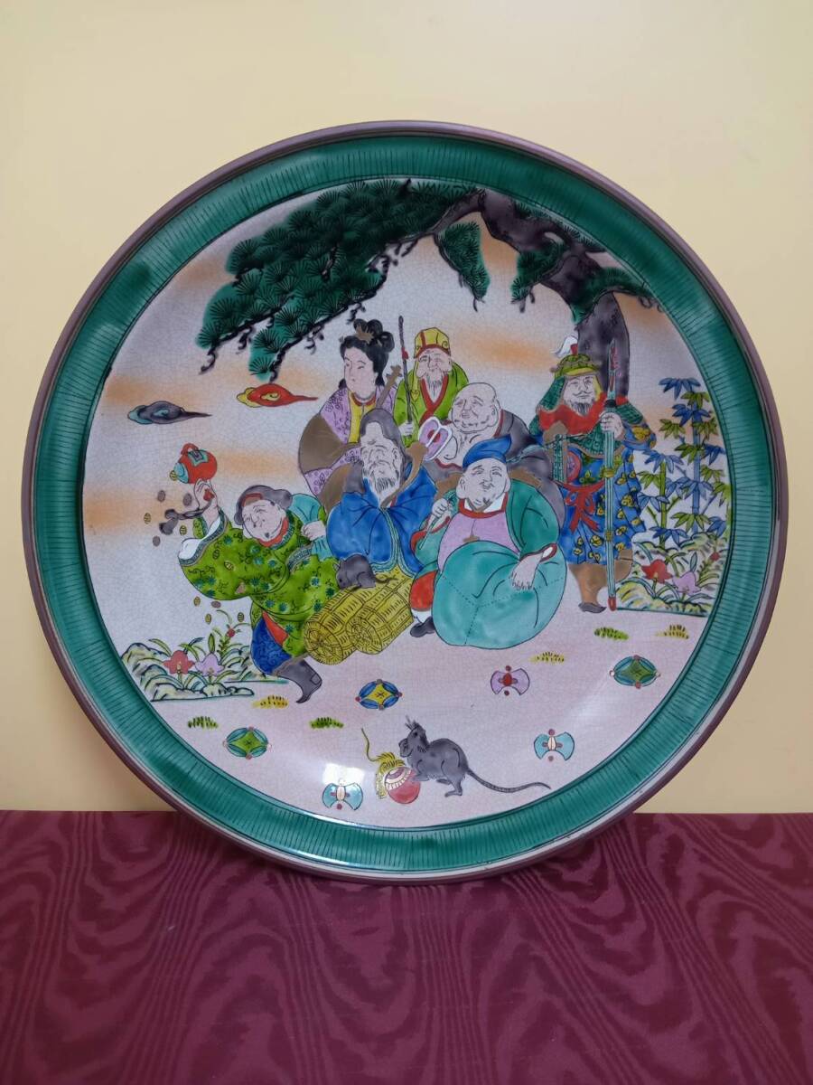 - 【古九谷 七福神 大皿】陶器 和食器 金彩 インテリア 縁起物 レトロ【A9-4】1015