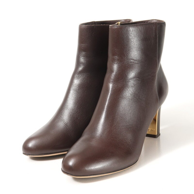 - GS3406*イタリア製 サルヴァトーレフェラガモ サイドジップ レザーショートブーツ 5.5D(22.5cm相当) 靴 ブラウン Salvatore Ferragamo