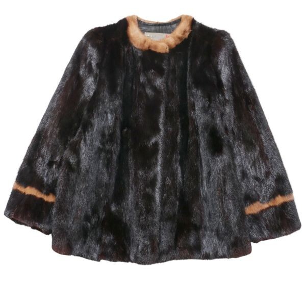 > GS1701◎カナダ製 H&I FUR INC ミンク ファーコート ハーフ丈 毛皮コート ノーカラー ファージャケット ブラウン系