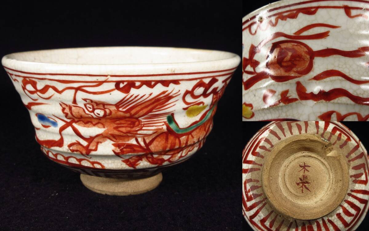 - 【漸】秀逸時代茶道具『青木木米(聲米)』造 赤絵龍画茶碗 合箱 古美術 茶道具 本物保証【HY2697】