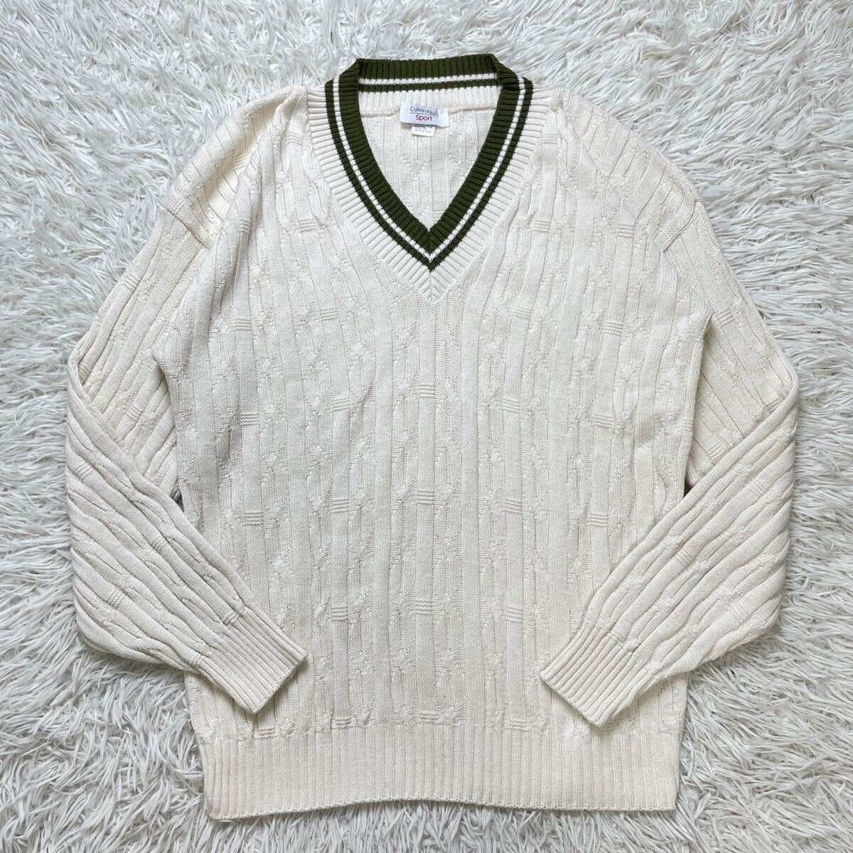 - 希少 USA製 カルバンクライン calvin klein チルデンニット ケーブル編み アイボリー セーター L相当