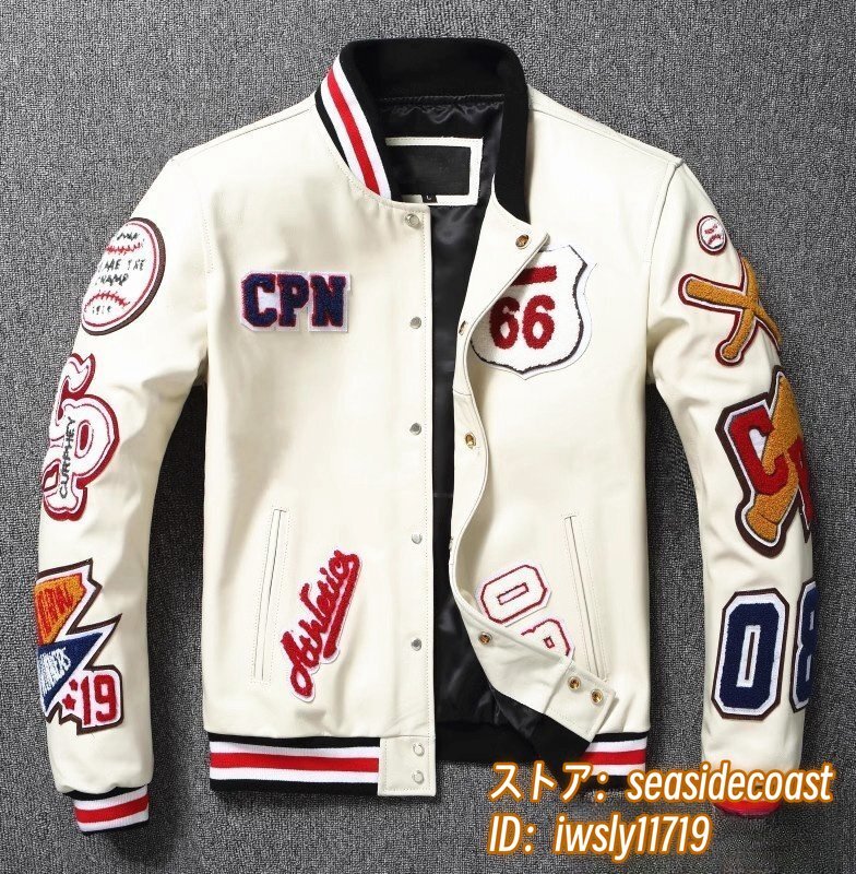 - 定価21万★メンズ スタジアムジャンパー 牛革 レザージャケット 本革 ライダース 超希少 イタリアレザー 皮ジャン 最豪華 バイクウェア 4XL