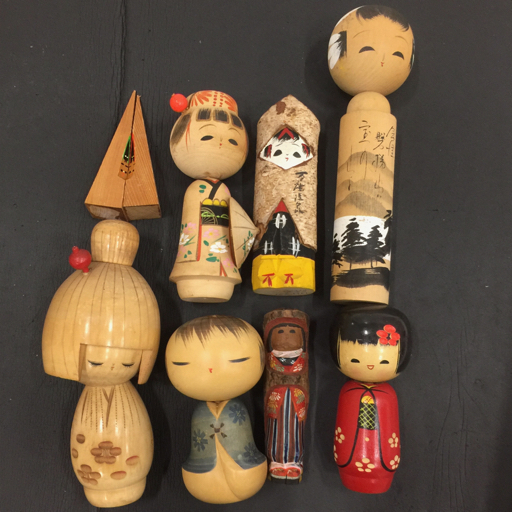- はじめ作之印 かに菊 約24.5cm 含む 辻田亮三 他 こけし 木製 人形 伝統工芸品 土産物 計9点 セット 現状品
