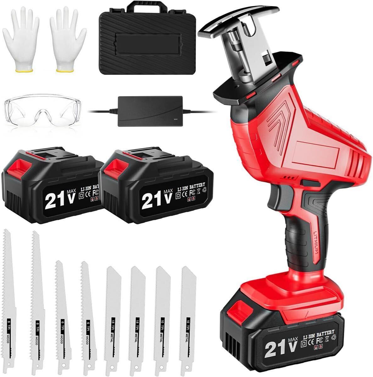 - 早い物勝ち電動ノコギリ 充電式 レシプロソー 2個バッテリー付き & 8枚の高炭素鋼のノコギリ刃 軽量 小型 枝切り 竹を切る