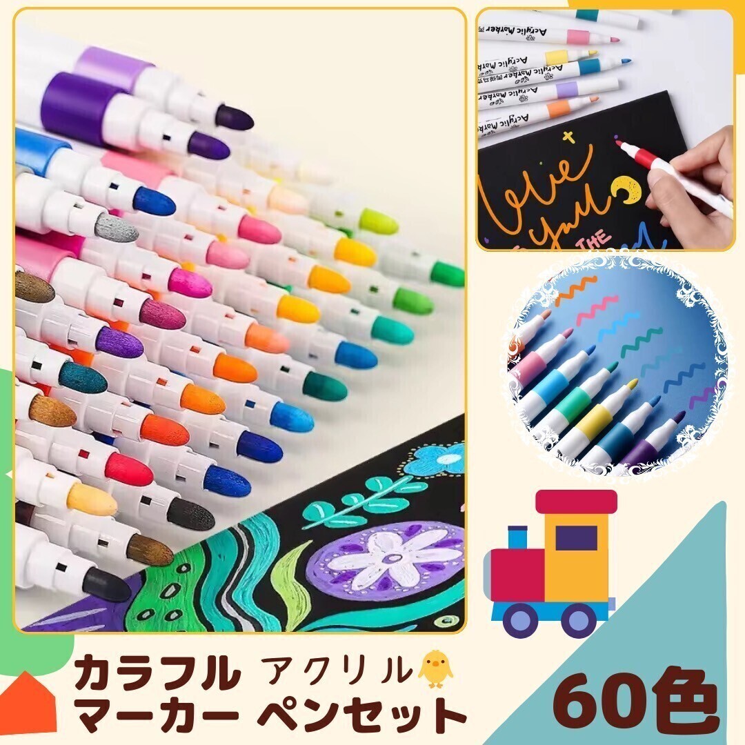 - 60色 アクリル マーカー ペンセット 大容量