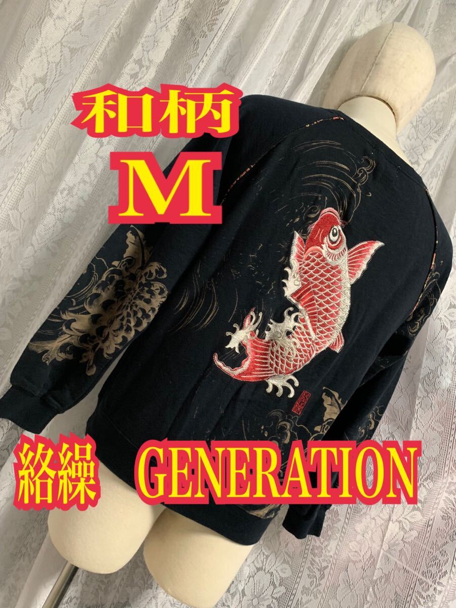 - 絡繰 GENERATION カラクリ 長袖 スウェット 和柄 鯉刺繍 黒 Mサイズ