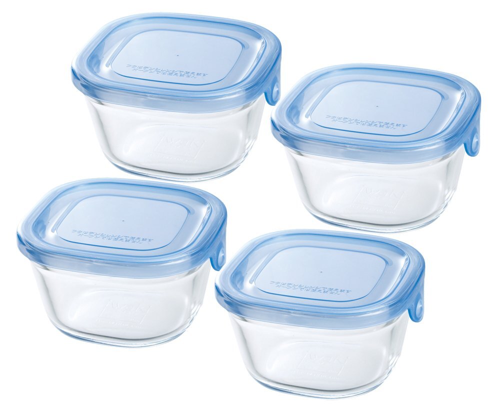 - iwaki(イワキ) 耐熱ガラス 保存容器 アクアブルー 角型 SS 200ml ×4個セット パック&レンジ KBC3200BLN