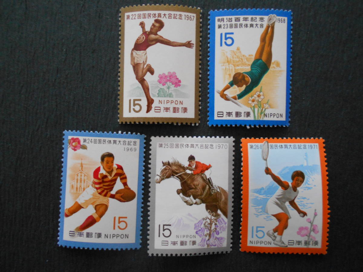 - 第22回国体~第26回国体セット 未使用15円切手5種